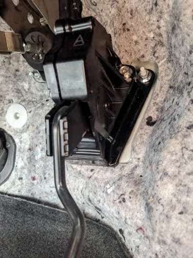 アクセルペダルが取り付けられているナット2箇所を緩めて間にかますだけですので簡単に取り付けできます。