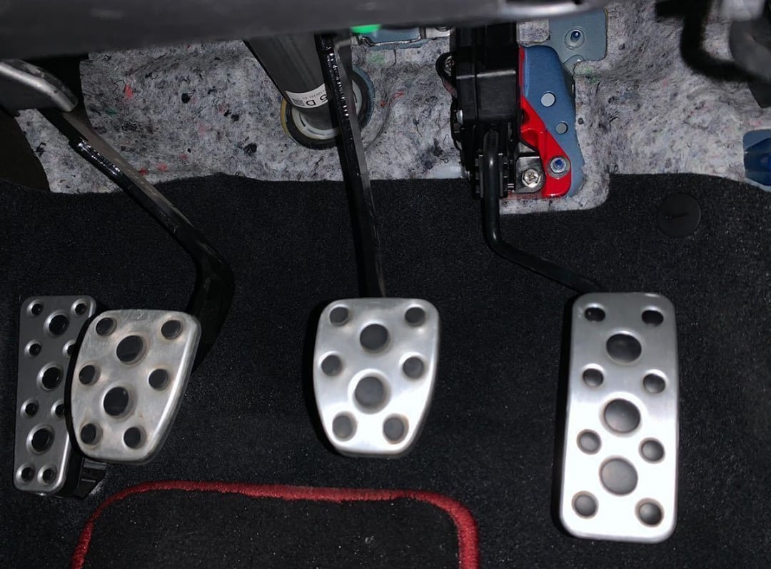 高さを上げるだけでなく、ブレーキペダル側にオフセットさせることによりさらにヒール&トゥをしやすくしました。